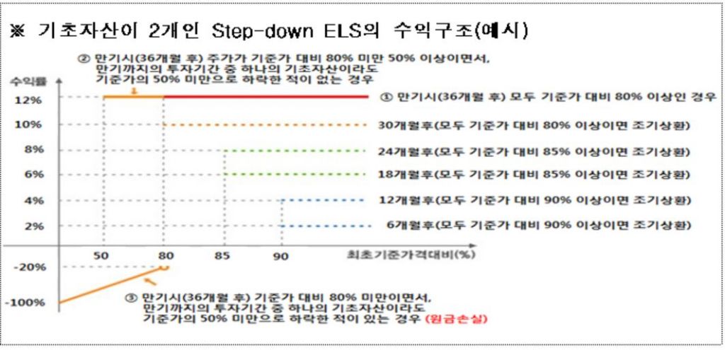 ELS는 종목이나 주가지수 등에 연동해 수익률이 결정되는 파생상품이다. 증권사가 발행한 당시 정한 기준점 이하로 기초자산 가격이 하락하지 않으면 투자자는 미리 약속한 수익률을 챙겨 조기상환 받을 수 있는 일종의 확률게임인 금융상품이다. 예를 들면 현재 100인 지수가 6개월안에 90 이하로 떨어지지 않으면 투자자가 2% 수익률과 함께 원금을 상환 받는다. 국내에서 발행되는 ELS는 대부분 '스텝다운형'으로 6개월마다 조기 상환을 실시하는데, 조기상환 기준에 미치지 못하면 만기까지 보유해야 한다. 기초 자산이 급락해 '녹인(Knock-In)' 구간에 진입하게 되면 원금 손실 위험도 있다.
