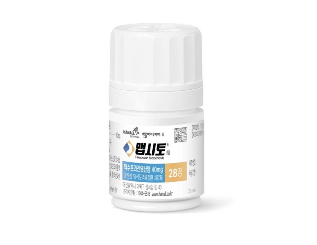 앱시토정 40㎎은 칼륨 경쟁적 위산분비 억제제(P-CAB) 계열의 위식도역류질환 신약으로 지난 1월 미란성 위식도역류질환 치료에 허가를 받았다. 칼륨 경쟁적 위산분비 억제제 계열 치료제는 위식도역류질환 치료를 위해 널리 사용되던 프로톤 펌프 억제제(PPI)를 이을 차세대 신약으로 주목받고 있다.