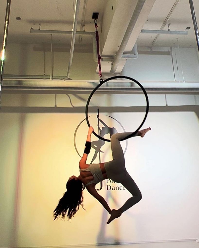 미나는 4일 자신의 SNS를 통해 "주말 후프 수업. 폴댄스와 또 다른 매력"이라는 글과 함께 사진 여러 장을 게재했다.