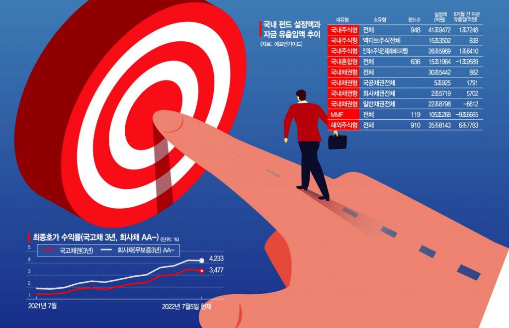 특히 회사채 펀드로 자금이 몰리고 있다. 금정섭 KB자산운용 ETF마케팅본부장은 "국고채와 회사채 간 신용스프레드(금리 차이)가 코로나19 위기 때보다 확대돼 동일 만기 채권 중 회사채의 매력도가 두드러지는 시점"이라고 분석했다. 예를 들어 평균 만기 2년 초반의 회사채에 투자하는 ‘KBSTAR중기우량회사채ETF’에 자금을 넣고 만기 보유시 연 4.2%의 수익을 거둘 수 있는 상황이다. 금리 매력이 커지면서 초단기 채권형 ETF는 단기자금 운용 수단으로 자리를 잡기도 했다. 국내 최초 무위험지표인 KOFR 지수를 추종하는 ‘삼성 KODEX KOFR 금리 액티브 ETF’는 지난 4월 상장 이후 57일만에 순자산 1조원을 확보했다. 5일 현재 순자산은 1조2734조원을 기록하고 있다. 임태혁 삼성자산운용 ETF운용본부장은 "기준금리 인상에 따라 채권형 상품 중 특히 초단기 채권형 ETF로 기관투자자들의 문의가 쇄도하고 있다"며 "개인 투자자들도 증권사 계좌 내에서 쉽게 ETF를 매수할 수 있어 재투자 기회를 노리는 등 단기 운용 수단으로 활용하려는 수요가 늘고 있다"고 밝혔다.