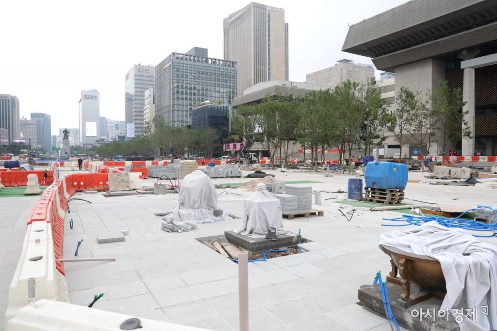 6일 서울 종로구 광화문광장 재구조화 공사가 한창이다. 광화문광장은 다음달 6일 개장한다. /문호남 기자 munonam@