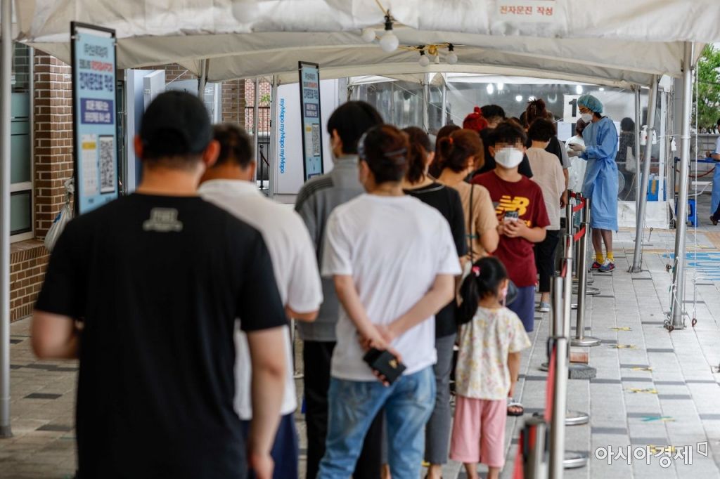 코로나19 신규 확진자가 3만명대로 들어선 12일 서울 마포구보건소에 마련된 선별검사소를 찾은 시민들이 검사를 받기 위해 줄을 서고 있다. /강진형 기자aymsdream@