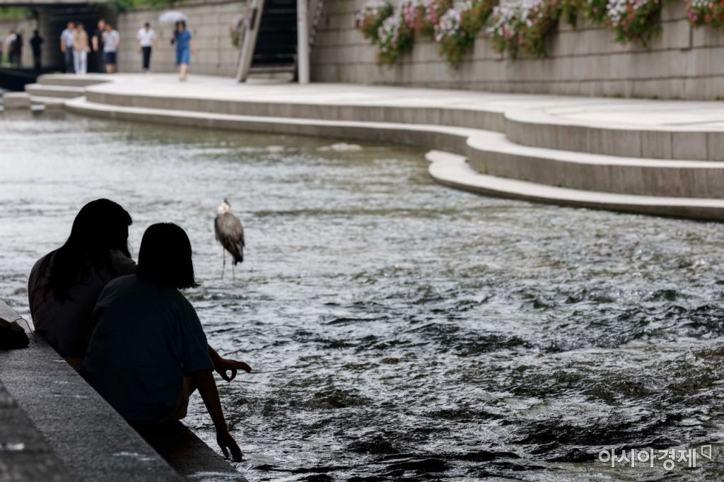폭염이 이어지고 있는 6일 서울 종로구 청계천을 찾으 시민들이 더위를 식히고 있다./강진형 기자aymsdream@