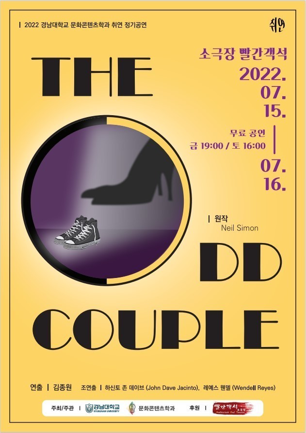 경남대학교 문화콘텐츠학과 공연예술 동아리 ‘취연’은 는 오는 15일~16일 마산 합포구 오동동에 있는 소극장 ‘빨간객석’에서 닐 사이먼의 ‘The Odd Couple’ 정기공연을 가진다.