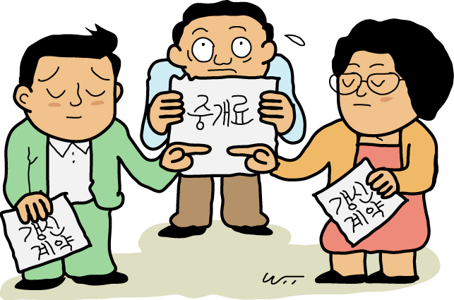 하지만 법률상 묵시적 갱신 상황에서도 세입자는 언제든 집주인에게 계약 해지를 통지할 수 있다. 주택임대차보호법 제6조의2 제1항에는 ‘묵시적 갱신이 된 이후에는 임차인(세입자)은 언제든지 임대인(집주인)에게 계약 해지를 통지할 수 있다’고 규정하고 있다. 바꿔 말하면 묵시적 갱신이 계약 기간 도중 종료됐을 때 중개수수료는 집주인이 부담해야 한다. 다만 임대차계약서에 이와 관련된 별도의 특약 사항이 있다면 기존 세입자는 집주인이 새 세입자를 구하는 데 필요한 중개수수료를 내게 될 수도 있다.