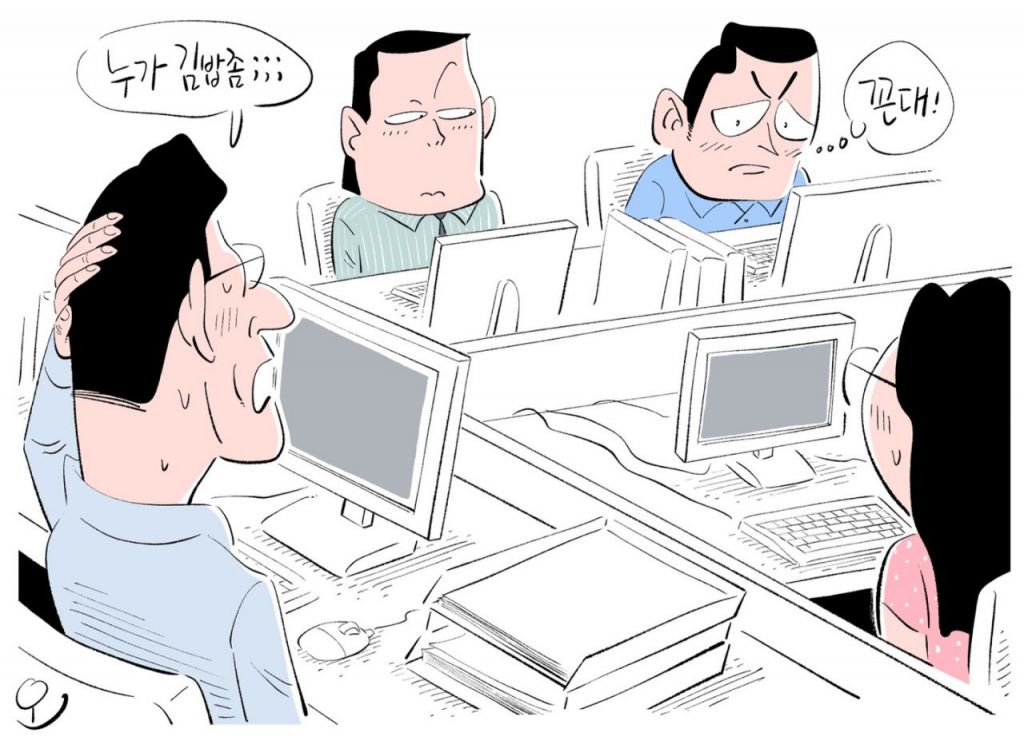 기자가 B차장에게 '김밥 심부름을 왜 시켰냐'고 물었습니다. "그날따라 더 바쁜 팀장에게 '아침이라도 드셨냐'고 했더니 '밥먹을 시간도 없다'고 해서 급히 김밥 심부름을 시킨 게 실수였다"는 게 B차장의 반성입니다. 다른 때 같으면 자신이 직접 갔을텐데 팀장과의 업무 때문에 D대리에게 부탁한 것이 다른 직원들에게는 꼰대스럽게 보였던 것이지요.