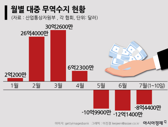 그렇다면 봉쇄의 충격파가 걷히면 수출 텃밭의 위상을 회복할 수 있을까. 장담하기 쉽지 않다. 지난달부터 주요 도시의 봉쇄를 해제한 중국의 6월 제조업 경기는 4개월 만에 확장 국면으로 반짝 전환했지만 대중 무역수지 지표는 악화일로다. 지난 5월 적자(-10억9900만달러)로 돌아섰던 대중 무역수지는 6월 -12억1400만달러로 되레 적자폭을 더 키웠다. 이달 분위기는 더 나쁘다. 지난 1일부터 10일까지 기록한 적자만 8억4400만달러가 넘는다. 수출의 4분의 1을 차지하는 대중 수출 악화가 지속될 경우 우리나라 전체 무역수지 회복에 걸리는 시간도 장기화할 가능성이 크다. 누적 무역적자는 이미 상반기 100억달러를 돌파하고, 이달 10일 기준 이미 158억달러를 넘어섰다.