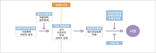 29명 모두 코로나19 이전부터 직업, 경제, 가족·부부·대인관계 문제 등으로 자살에 취약했지만 코로나19에 따른 실직, 폐업 등 경제상황 변화나 사회적 활동 제한의 영향으로 자살사망에 이르게 된 것이다.