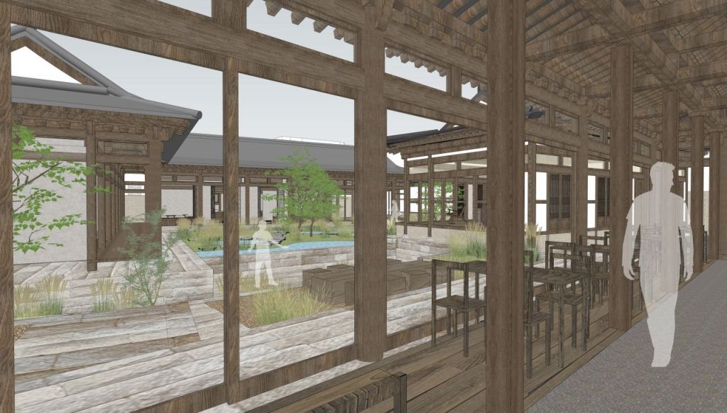 가장 접근성이 좋고 상징성이 있는 바깥사랑채에 F&B와 리셉션을 계획하고 안채와 중정으로의 관문 역할을 하는 사랑채는 숙박객 전용 라운지 역할을 담당한다.