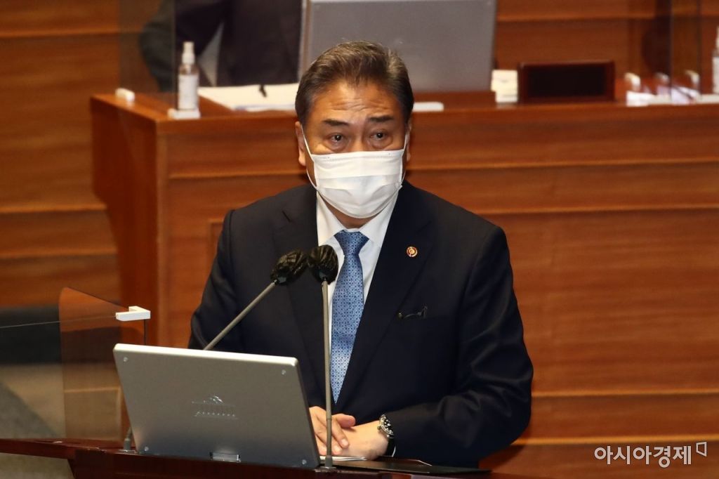 박진 외교부 장관이 25일 국회 본회의장에서 열린 정치·외교·통일·안보 분야 대정부질문에 출석, 의원들의 질문에 답변하고 있다./윤동주 기자 doso7@