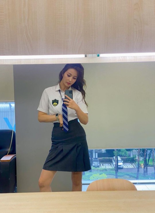 공개된 사진 속 안혜경은 방송 콘셉트 의상인 교복을 입고 포즈를 취하고 있다