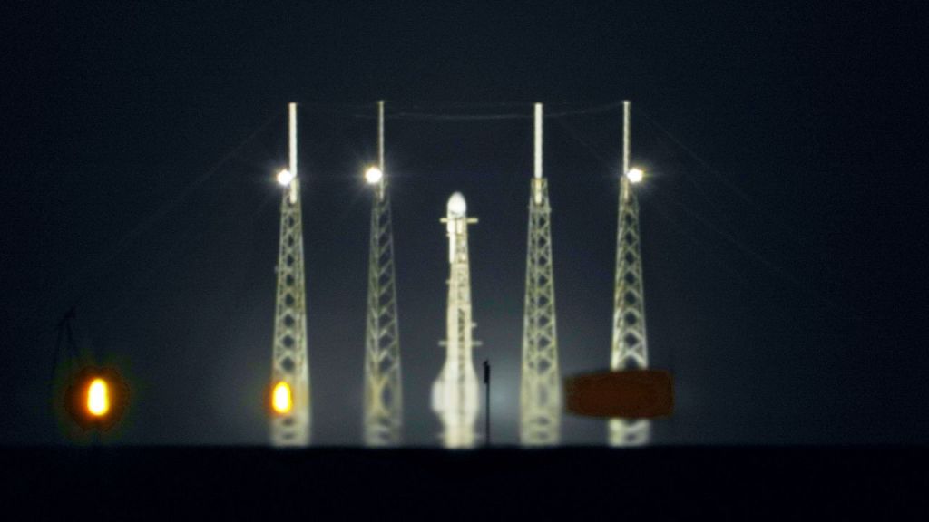 한국의 첫 달 탐사선 '다누리'를 탑재한 미국 스페이스X의 팰컨9이 3일 오후10시15분쯤(현지시간) 미국 플로리다주 케이프커내버럴 우주군기지 40번 발사대에서 기립을 완료했다. 사진=공동취재단.