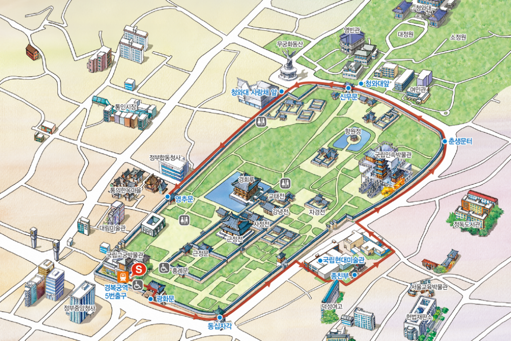 신규코스 세 곳은 ?경복궁 돌담길과 청와대 ?광화문광장 ?율곡로 궁궐담장길이다. ‘경복궁 돌담길과 청와대’는 경복궁 돌담길을 따라 걸으며 조선시대부터 현재까지 600년간 권력의 중심이었던 청와대 주변을 살펴볼 수 있는 코스다. 총 2.8km 코스로 약 2시간 소요된다.
