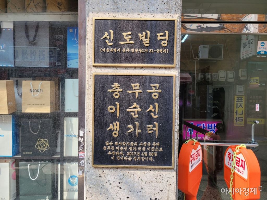 시민들이 언급한 이순신 생가터 표지석은 중구 명보아트홀(옛 명보극장) 앞에 있다. 이순신 생가터가 최종적으로 확정 되기 이전에 서울시가 1985년 이 일대에 설치했다. 그로부터 30여년이 흐른 2017년, 4월28일 역사학자들의 고증을 받아 이 표지석으로부터 5분 거리에 있는 신도빌딩 자리를 이순신 생가터로 확정했다.