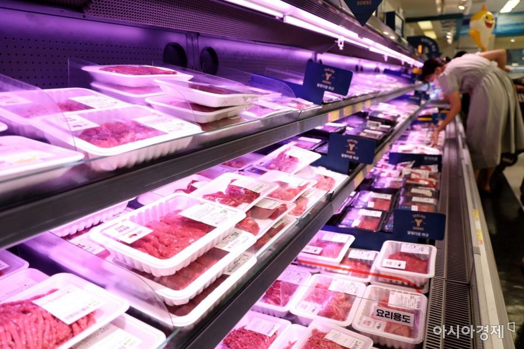 추석을 앞두고 밥상 물가에 비상이 걸렸다. 통계청 국가통계포털(KOSIS)에 따르면 7월 식료품 및 비주류 음료 물가지수는 113.12(2020년=100)로 1년 전보다 8.0% 올랐다. 식품 물가는 지난해 2월 이후 1년 5개월 만에 가장 큰 폭으로 상승했다. 특히 식용 유지(34.7%) 등 가공식품과 채소·해조류(24.4%) 등 신선식품 물가가 크게 올랐다. 7일 서울 시내 한 대형마트를 찾은 시민들이 장을 보고 있다. /문호남 기자 munonam@