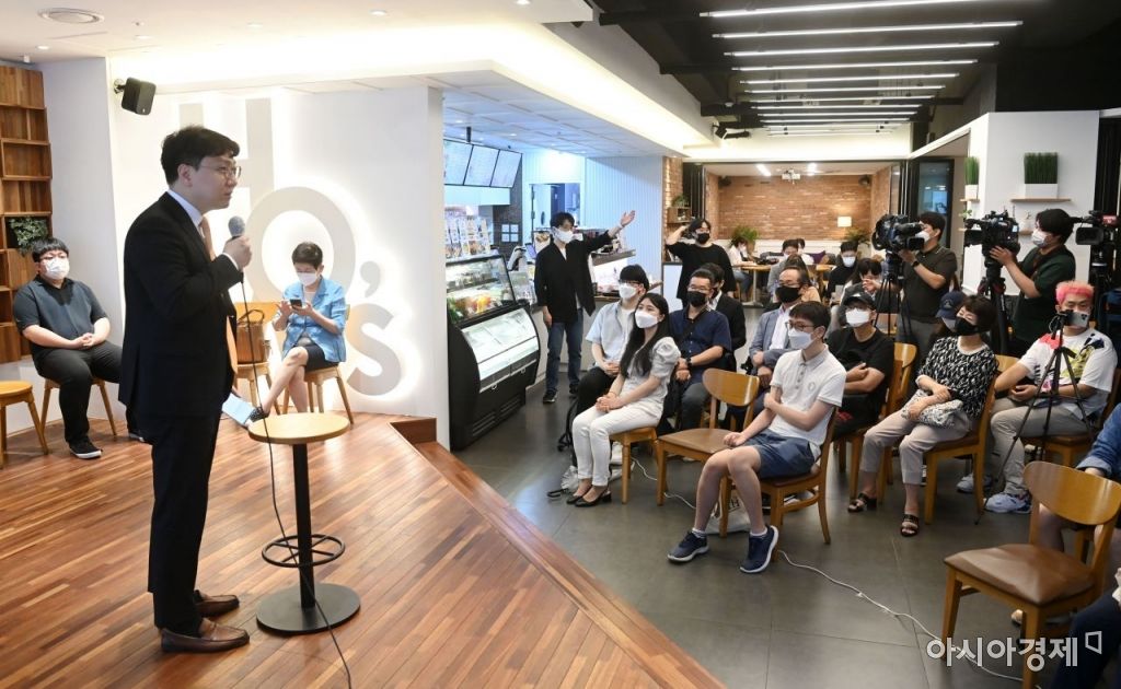 [아시아경제 윤동주 기자] 이준석 국민의힘 대표 지지 모임인 '국민의힘 바로세우기' 소속 당원들이 6일 서울 여의도의 한 카페에서 이 대표를 지지하는 모임을 갖고 있다.