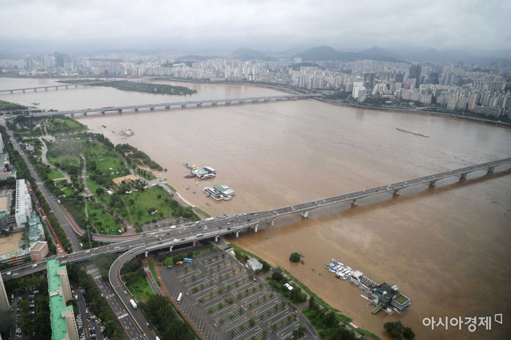 서울 등 중부지방을 중심으로 기록적인 폭우가 내린 9일 여의도 한강공원이 물에 잠겨 있다. /문호남 기자 munonam@