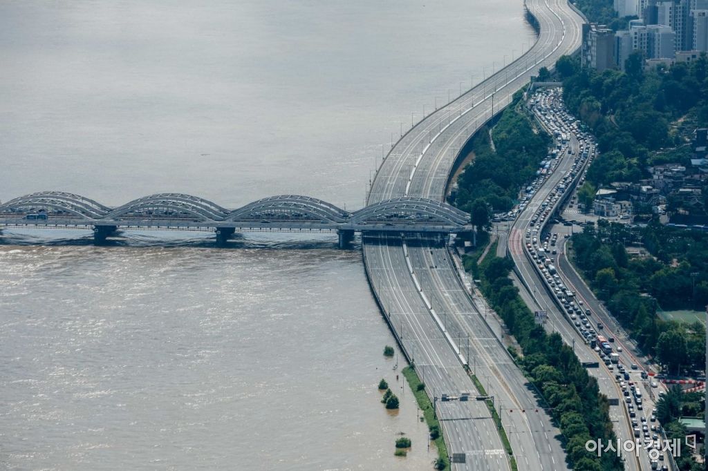 중부지방을 휩쓴 폭우가 소강상태에 접어든 10일 서울 올림픽대로 김포방면 동작대교부터 가양대교 구간이 통제되고 있다./강진형 기자aymsdream@