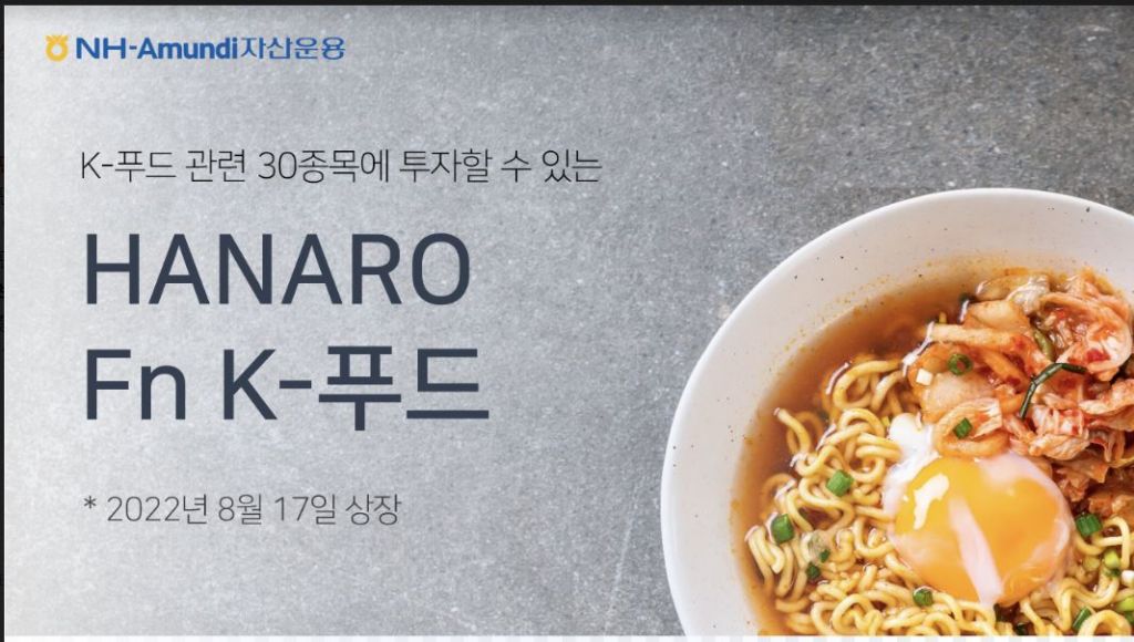 고숭철 NH-Amundi자산운용 주식운용총괄CIO는 "글로벌시장에서 한국의 문화적 파워가 콘텐츠에 이어 음식료에 대한 관심과 소비로 이어지고 있다"며 "HANARO Fn K-푸드 ETF는 구조적으로 성장하는 K푸드 테마에 투자하는 좋은 수단이 될 것"이라고 말했다.