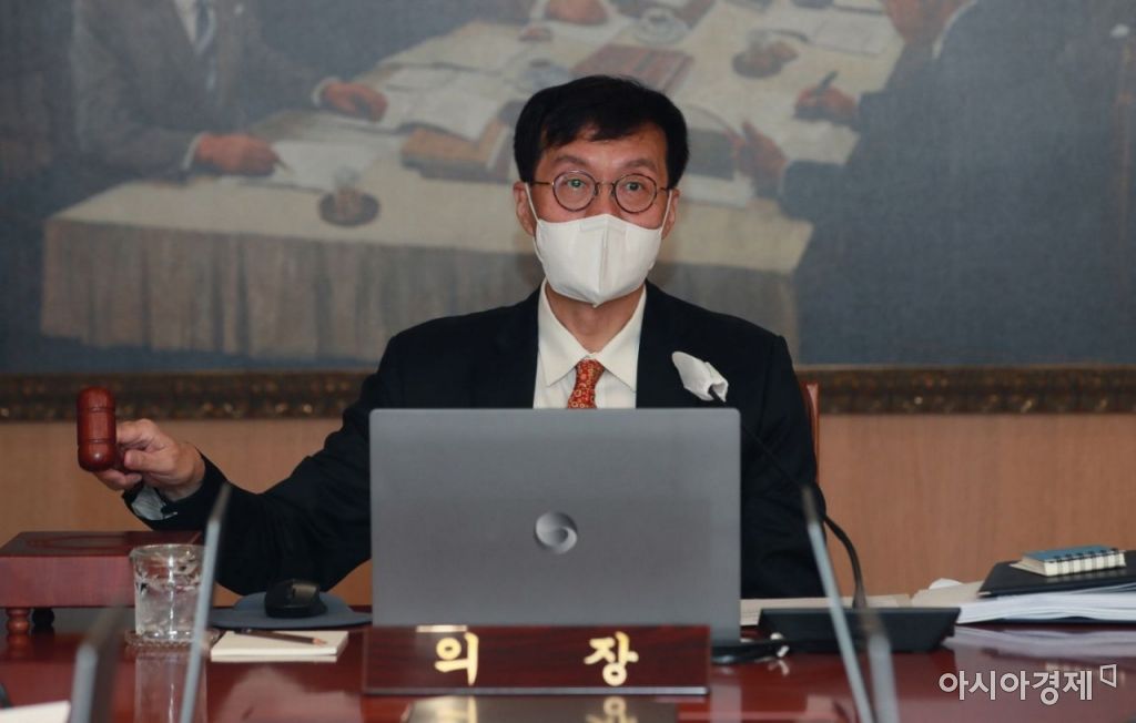 이창용 한국은행 총재가 13일 서울 중구 한국은행에서 열린 금융통화위원회 본회의에서 의사봉을 두드리고 있다./강진형 기자aymsdream@