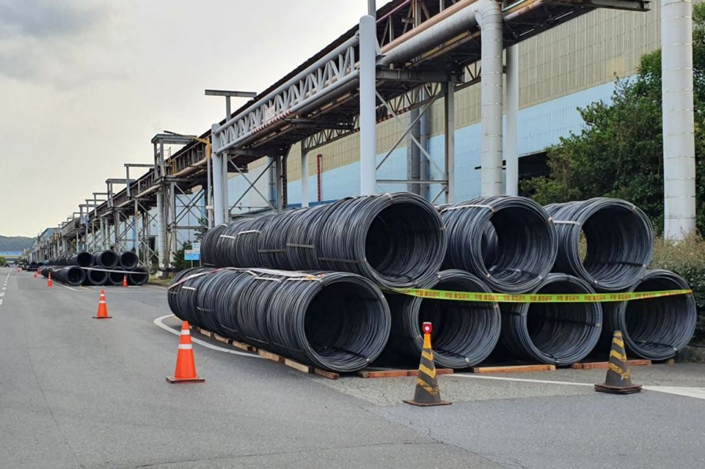 제철소 공장 외부에 출하하지 못한 제품이 쌓여 있다. 사진은 기사와 직접적인 연관 없음. [이미지출처=연합뉴스]