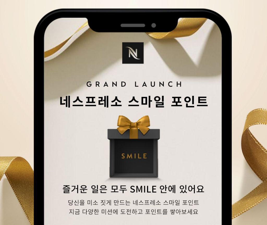 네스프레소 스마일 포인트에서 소비자들은 신제품 캠페인을 비롯해 나에게 맞는 커피 찾기, 친구 초대하기 등 재미있는 미션들을 통해 네스프레소만의 다양한 브랜드 스토리를 경험해 볼 수 있다. 미션 통과 시 쌓이는 포인트는 선물로도 교환이 가능해 프리미엄 커피 경험을 더욱 다채롭게 만들어준다.