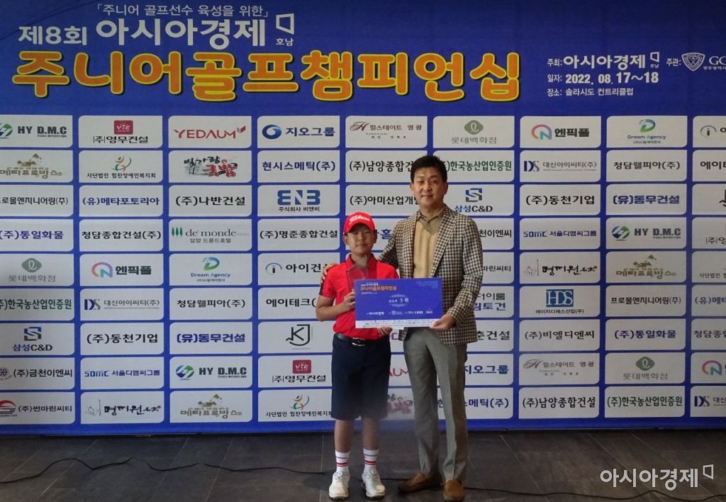 [아시아경제 호남취재본부 박진형 기자] 17~18 양일간 전남 해남군 솔라시도 컨트리클럽에서 열린 제8회 아시아경제호남배 주니어골프챔피언십 대회에서 남초부 5위 김도윤 온천초등학교 6학년 학생이 기념사진을 찍고 있다.