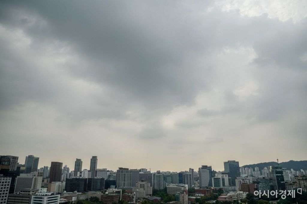 전국적으로 구름 많은 날씨가 이어지고 있는 18일 서울 중구 태평로에서 바라본 도심 하늘에 먹구름이 관측되고 있다./강진형 기자aymsdream@