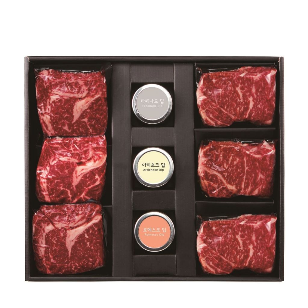 현대백화점은 이같은 트렌드를 반영해 8월22일~9월9일 추석 선물세트 본판매 기간 스테이크를 비롯한 다양한 선물세트를 선보인다. 대표 상품으로 등심로스·채끝 스테이크를 각 900g씩 담은 현대특선 한우 구이 죽(竹) 세트와 한우 특수부위 세트 난(蘭) 세트(살치살 600g, 갈비살 600g), 이탈리 피렌체식 티본 스테이크 세트 등이 있다. 르꼬르동 블루 출신의 h450 김형석 총괄 셰프의 레시피로 만든 디핑 소스를 추가한 한우와 김형석 셰프의 디핑소스 세트도 이번 명절 처음 선보인다.