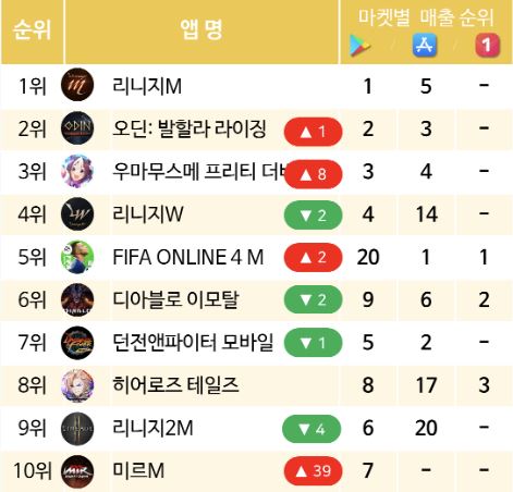 24일 아이지에이웍스의 빅데이터 분석 솔루션 모바일인덱스에 따르면 7월 모바일 게임 매출 1위는 엔씨소프트(이하 엔씨)의 리니지M이 차지했다. 리니지M 외에도 리니지W와 리니지2M 등 엔씨의 리니지 형제가 4위와 9위에도 이름을 올리며 엔씨의 전체 실적을 이끌었다.
