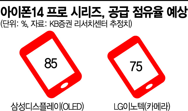 스마트폰 출하량 감소 분위기 속에서도 브랜드 충성도가 높아 인플레이션과 경기하락 국면에 둔감한 아이폰의 특징은 애플에서 부품 점유율을 높이고 있는 삼성디스플레이와 LG이노텍에 호재로 작용한다. 애플이 부품업체에서 사전 주문한 아이폰14 초도물량(9~12월)은 아이폰13 8200만대 대비 15% 증가한 9300만대다.