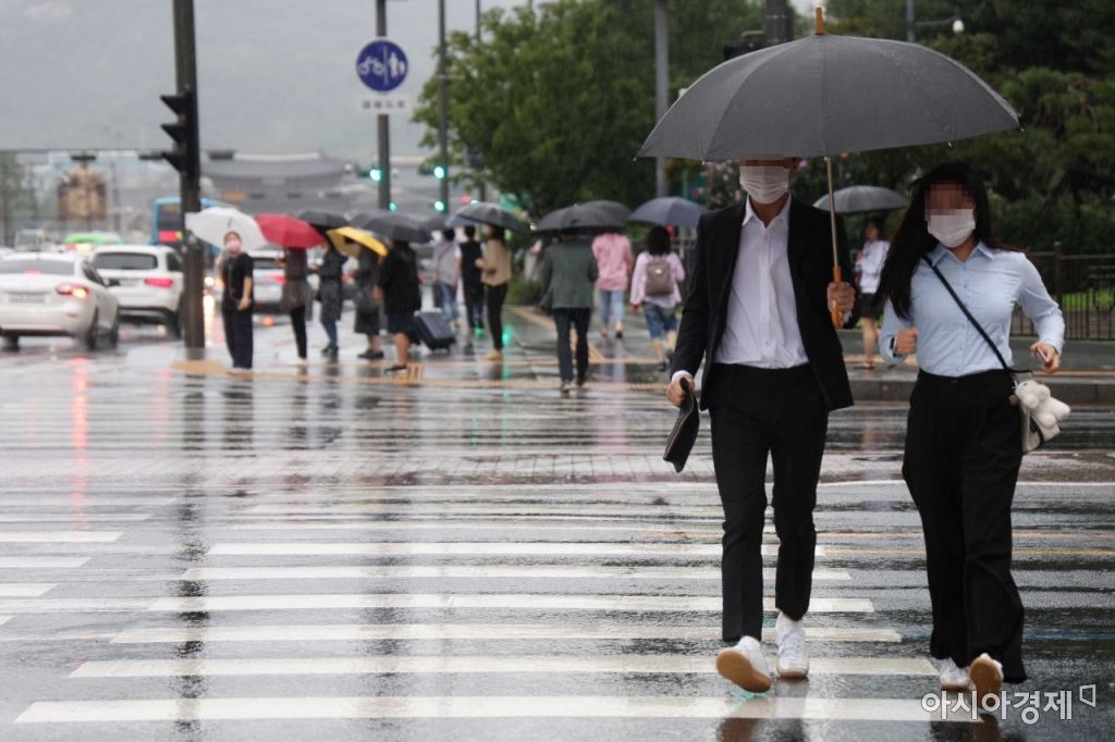 중부지방을 중심으로 비가 내린 30일 서울 광화문 사거리에서 출근길 시민들이 발걸음을 재촉하고 있다. /문호남 기자 munonam@