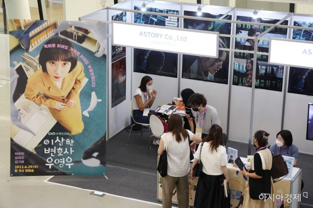 31일 서울 동대문디자인플라자에서 열린 국제방송영상마켓 ‘BCWW(BroadCast WorldWide) 2022’에서 시민들이 드라마 이상한 변호사 우영우 관련 부스를 둘러보고 있다. /문호남 기자 munonam@
