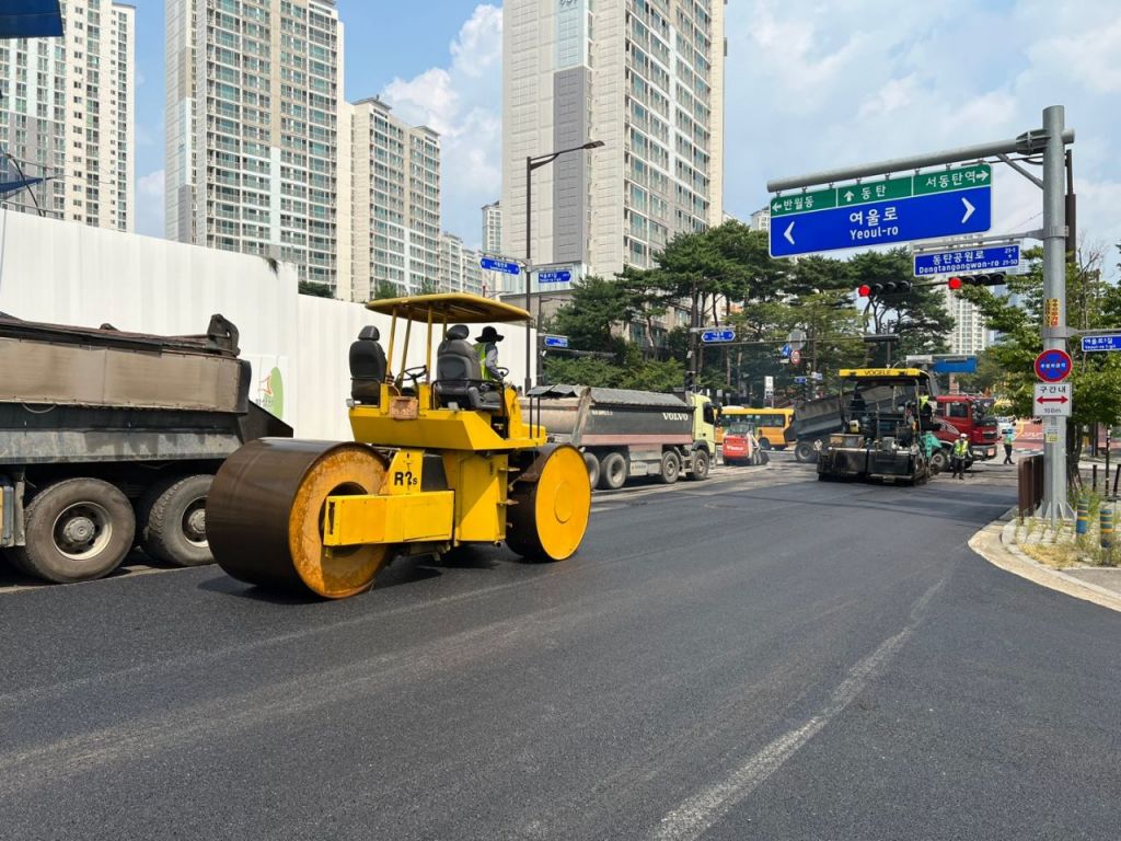 지난 8일 경기도 화성시 동탄신도시에서 한 아스콘 업체가 도로 보수공사를 하고 있다. [사진제공=서울경인아스콘공업협동조합]