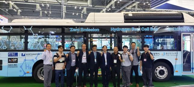 수소전기하이브리드 버스를 개발한 기업과 울산테크노파크의 개발자.
