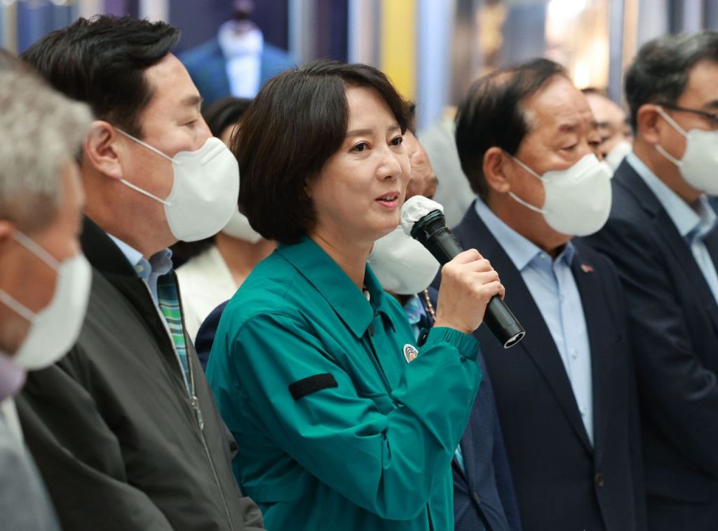 이영 중소벤처기업부 장관이 추석 연휴을 앞둔 5일 서울 종로구 광장시장에서 열린 전통물품 전달식에서 발언하고 있다. [이미지출처=연합뉴스]