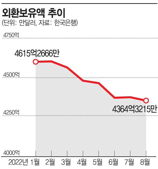 최근 전세계적인 ‘킹달러’ 흐름 속에서도 원화의 낙폭이 유난히 두드러지고 있는 가운데 우리나라의 외환보유고도 빠르게 감소하고 있다. 국가 경제 비상시 대외 지급결제와 위기 상황에 대응하기 위한 안전판 역할을 하는 외환보유액이 감소세로 전환하면서 외환보유액 규모에 대한 적절성 논란이 심화하고 있다. 현재 우리나라의 외환보유액은 국제결제은행(BIS) 등 주요 기관이 추정한 적정 외환보유고에 미달한다는 입장과 지금의 강달러 현상은 글로벌 공통인 만큼 과거 1997년 외환위기와는 다르게 봐야 한다는 시각이 팽팽히 맞서고 있다. 이에 아시아경제는 적정 외환보유액을 둘러싼 찬반 입장을 들어봤다. <편집자주>