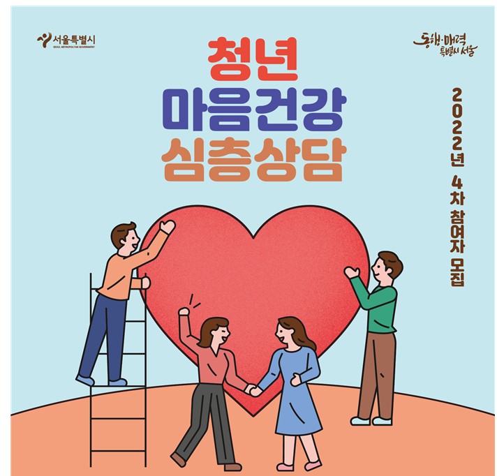 [아시아경제 임철영 기자] 서울시가 오는 19일까지 ‘서울 청년 마음건강 지원사업’ 참여자 2000명을 추가로 모집하여 일대일 심층상담을 지원한다고 13일 밝혔다. 올해 마지막 모집으로, 불안, 우울감, 무기력감을 경험하고 있는 만 19~39세 서울 거주 청년이면 누구나 청년 몽땅 정보통에서 신청할 수 있다.