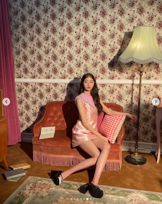 공개된 사진 속 장원영은 핑크색 원피스를 입고 군살 없는 각선미를 과시해 눈길을 끌었다.