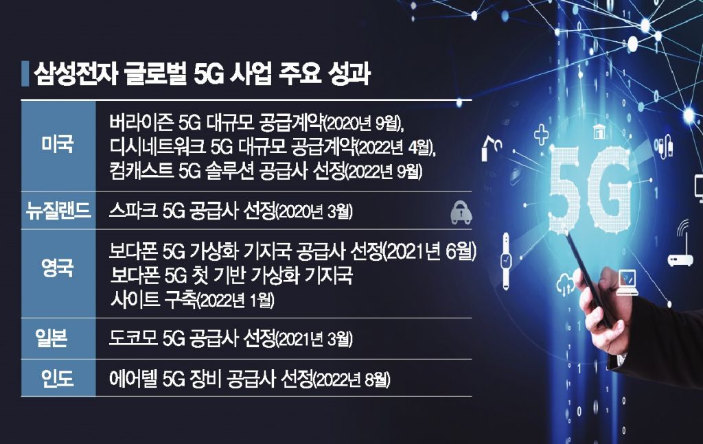 삼성은 2019년부터 글로벌 5G 시장 개화에 발맞춰 장비 수주 성과를 올리고 있다. 앞서 삼성은 미국 버라이즌, 미국 디시 네트워크, 영국 보다폰, 영국 KDDI, 인도 에어텔 등 글로벌 통신사업자들과 5G 장비 대규모 공급계약을 체결한 바 있다. 이외에도 캐나다와 뉴질랜드, 일본 등에서 다수 주요 통신사들의 공급을 수주했다.
