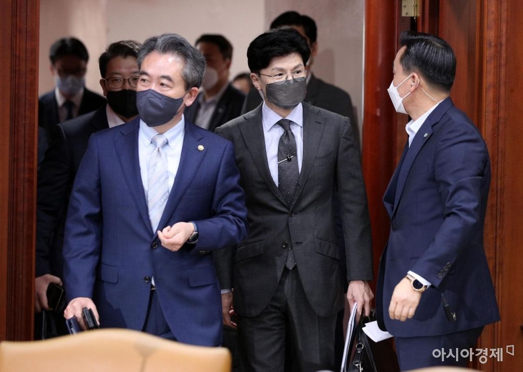 한동훈 법무부 장관과 윤희근 경찰청장이 23일 서울 종로구 정부서울청사에서 열린 국정현안관계장관회의에 참석하고 있다. 이날 회의에서는 스토킹 등 집착형 잔혹범죄 대응방안 등에 대해 논의했다./김현민 기자 kimhyun81@