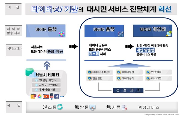 다만 중앙정부와의 데이터 공유, 데이터 표준화 및 개인정보 수집·활용을 위한 법 개선 등에 기간이 소요되는 만큼 정부의 ‘디지털플랫폼정부 단계적 이행안(로드맵)’과 연계해 협력체계를 유지하면서 점진적으로 추진해나갈 계획이다.