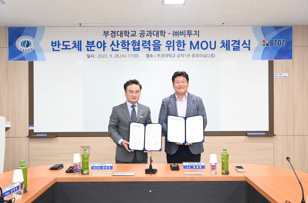 부경대 공과대학은 지난 28일 공학 1관 중회의실에서 비투지와 업무협약을 맺고 전략적 업무제휴로 차세대 반도체 분야 산업경쟁력 강화와 연구개발, 혁신 인재 양성에 협력하기로 했다.