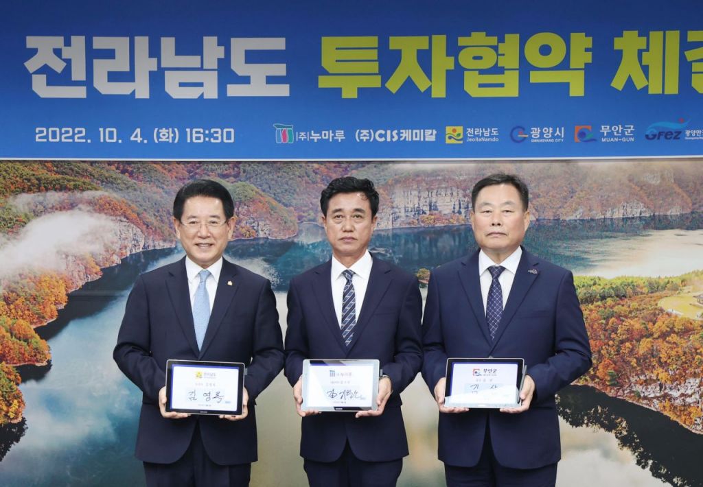 무안군은 4일 전남도청에서 김영록 전라남도지사, 김산 무안군수, ㈜누마루 김기원 대표가 참석한 가운데 망운면 조금나루 일원에 호텔·리조트(휴양콘도미니엄) 건립을 위한 1500억원 규모의 투자협약을 체결했다.
