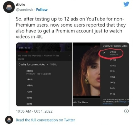 업계에 따르면 구글은 틱톡 등 경쟁사로 인한 수익 저하를 유튜브 프리미엄 개편을 통해 만회에 나선 것으로 보고 있다. 4K 초고화질 서비스를 유튜브 프리미엄 이용자에게만 제공하고 일반 이용자들에게는 한단계 낮은 FHD(1440p) 해상도의 영상만 제공하는 식이다.