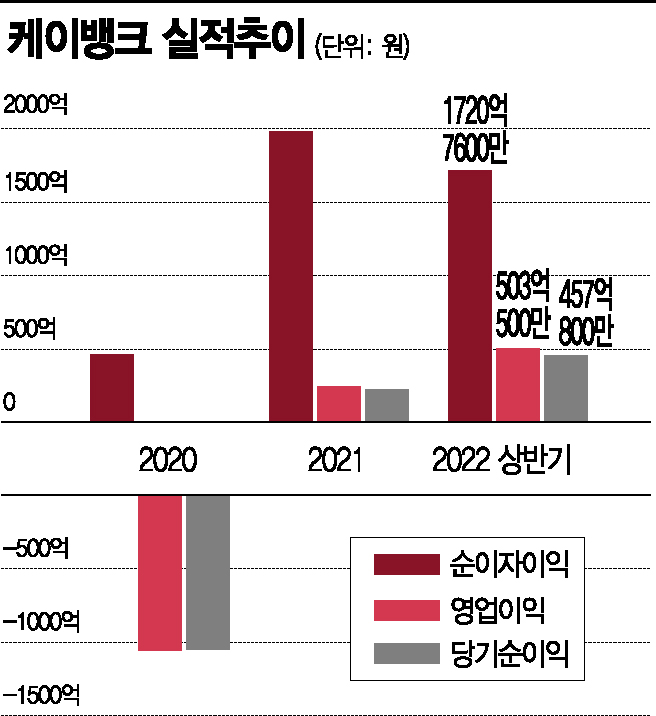 [아시아경제 박소연 기자] 1세대 인터넷전문은행 케이뱅크가 증시 혹한기에 기업공개(IPO)에 도전한다. 케이뱅크는 예비심사 청구 3개월 만에 한국거래소로부터 예비심사 승인을 받았다. 케이뱅크는 예심 승인 6개월 이내인 내년 3월까지 상장을 마쳐야 한다. 시장에선 케이뱅크가 상장을 위한 최적의 타이밍은 놓쳤다는 분석이 나온다. 주요국 중앙은행의 강력한 통화 긴축 때문에 금융시장 여건이 악화하고 있어 앞날을 낙관하기가 어렵다. 하지만 은행업과 플랫폼 사업이 결합한 인터넷전문은행업 초기 진출 사업자로서 저력과 성장 가치를 가진 기업이라 시장 관계자들이 여전히 주목하고 있다.