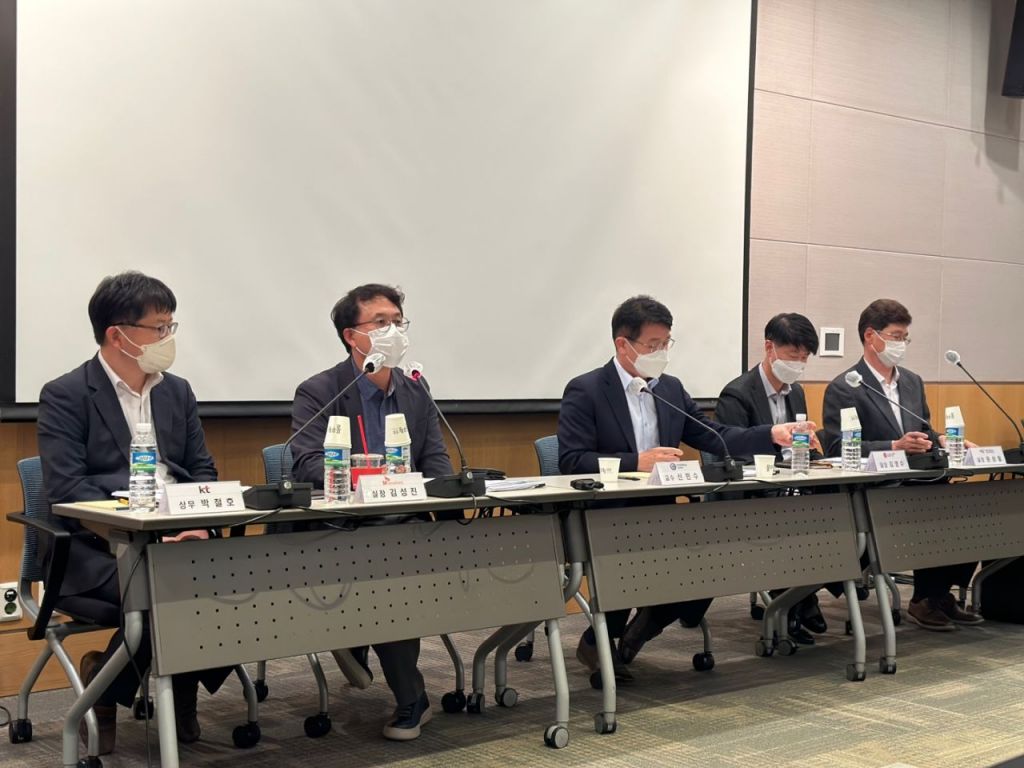 한국통신사업자연합회(KTOA)는 12일 서울 여의도 전경련회관에서 글로벌 빅테크 망 무임승차와 관련해 이동통신3사와 공동으로 망 무임승차 하는 글로벌 빅테크 이대로 괜찮은가?를 주제로 기자간담회를 가졌다. 왼쪽부터 박철호 KT 상무, 김성진 SK브로드밴드 실장, 신민수 한양대 교수, 김영수 LG유플러스 담당, 윤상필 KTOA 실장이 질의응답 시간을 갖고 있다. 사진=차민영 기자