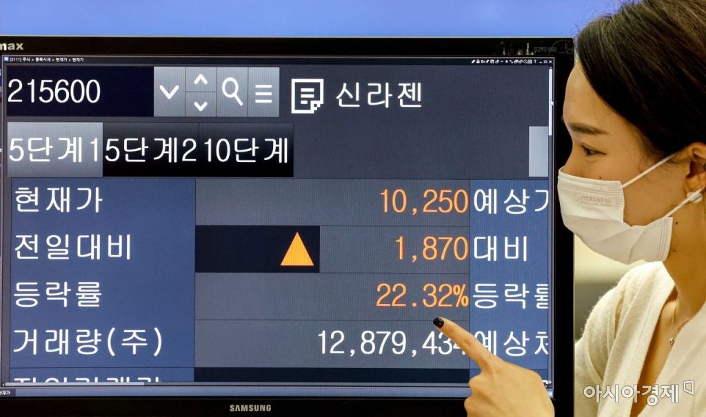 신라젠이 2년 5개월 만에 거래를 재개한 13일 서울 여의도 한국거래소 시황판에 신라젠 주가가 표시돼 있다./강진형 기자aymsdream@