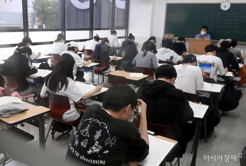 지난 8월31일 서울 마포구 종로학원 강북본원에서 재수생들이 9월 수능모의고사에 응시하고 있다./강진형 기자aymsdream@