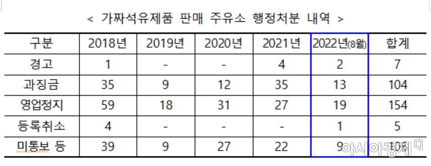 특히, 가짜 석유 판매 등 적발 사례 대부분은 행정처분으로 종결되는 등 단속과 처벌 실효성이 떨어진다는 지적이 나온다.